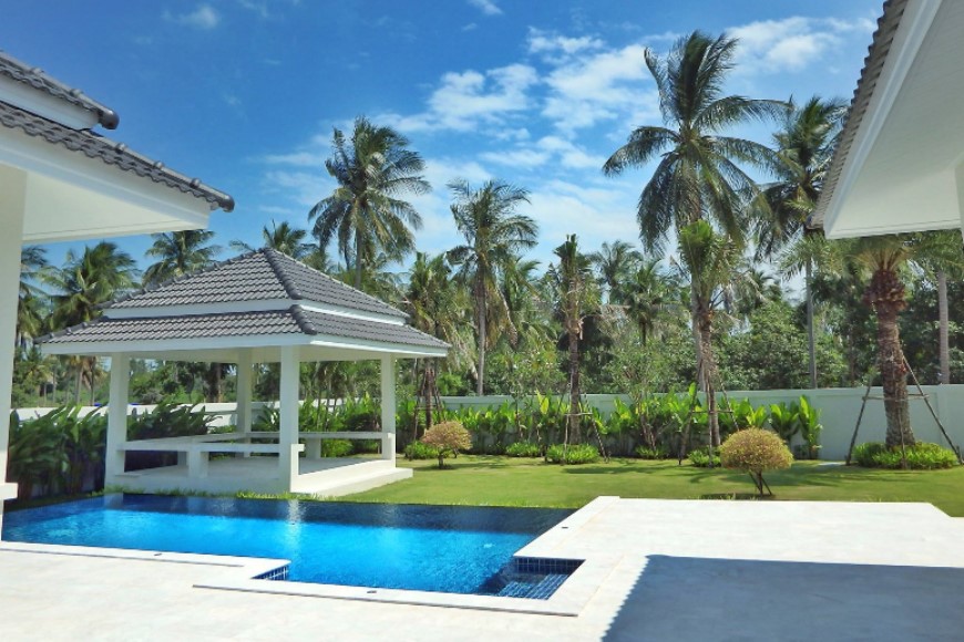 Alle villa's zijn gebouwd volgens hoge Europese normen en zijn voorzien van 3,8 m hoge plafonds, hardhouten deuren, hoogwaardige aluminium kozijnen, 15 cm dubbele muurisolatie, 18 cm dikke muren, Kohler-badkamermeubels met granieten werkbladen. De zwembadomgeving van het 8m x 4m zwembad is afgewerkt met marmeren tegels. Het zwembad heeft een infinity overloop en is uitgerust met een Amerikaanse filter & pompinstallatie. De omringende muren zijn 2 m hoog. De tuin heeft tropisch thema. Roestvrijstalen automatische veiligheidshekken. KVIK-keukens zijn standaard. Het keukenbudget is 200.000 THB en is inbegrepen in de prijs. De villa heeft een geïntegreerd centraal airconditioningsysteem. CCTV beveiligingscamera's kunnen op aanvraag worden geïnstalleerd. Energiepakketten voor zonnepanelen beschikbaar.