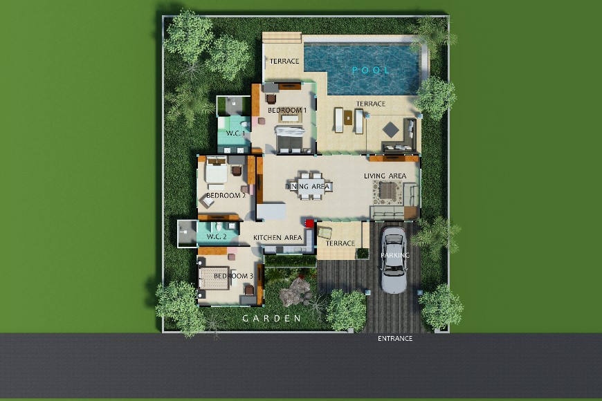 - Larger plots will be charged at an additional rate of THB 3.500m²