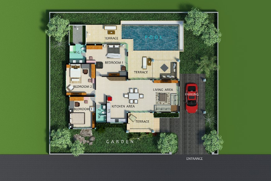 - Larger plots will be charged at an additional rate of THB 3.500m²